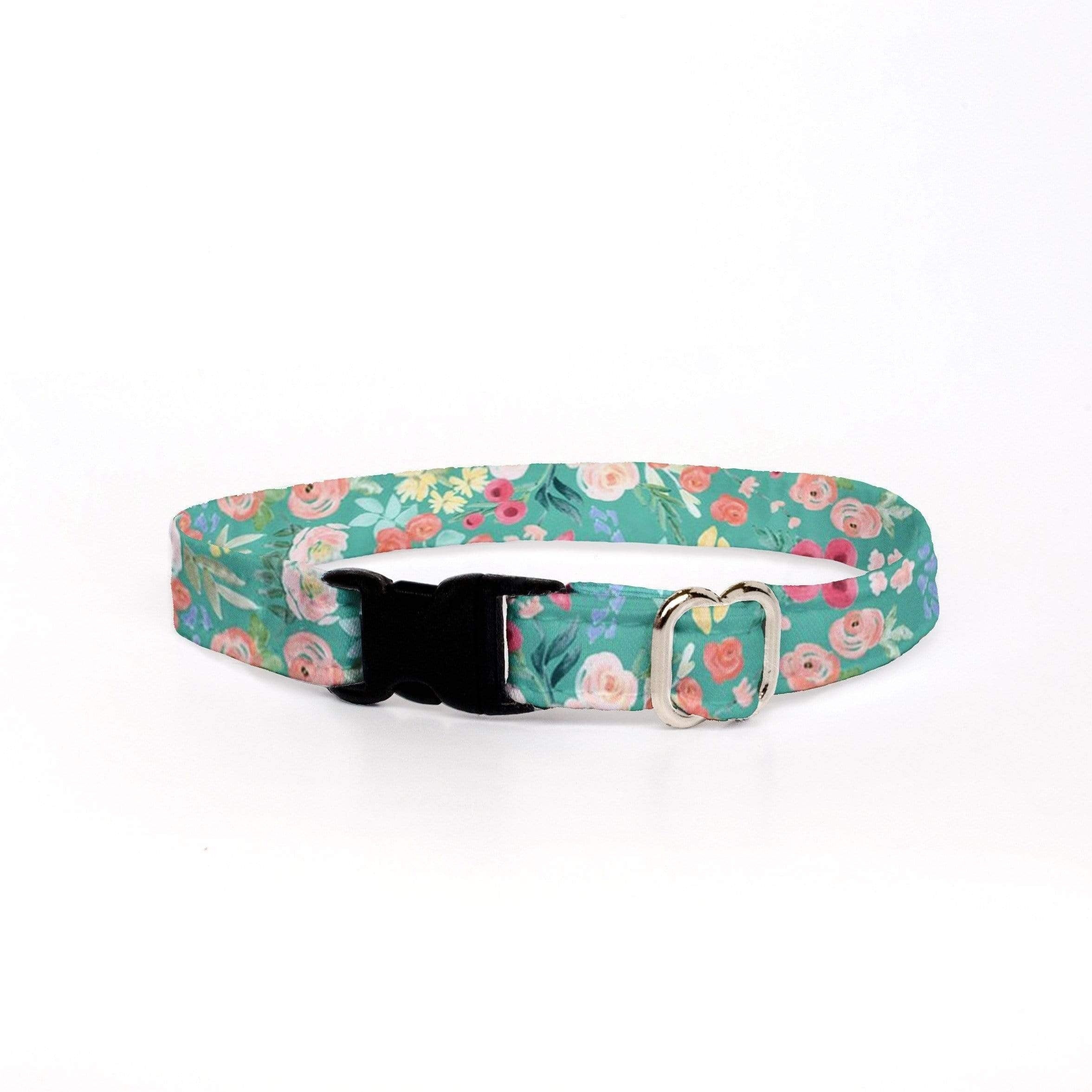 Floral themed pet collar is available in multiple sizes for cats, kittens + small dogs. All of our collars are carefully handmade, one-at-a-time, ensuring luxury, quality, safety and comfort for your pet.