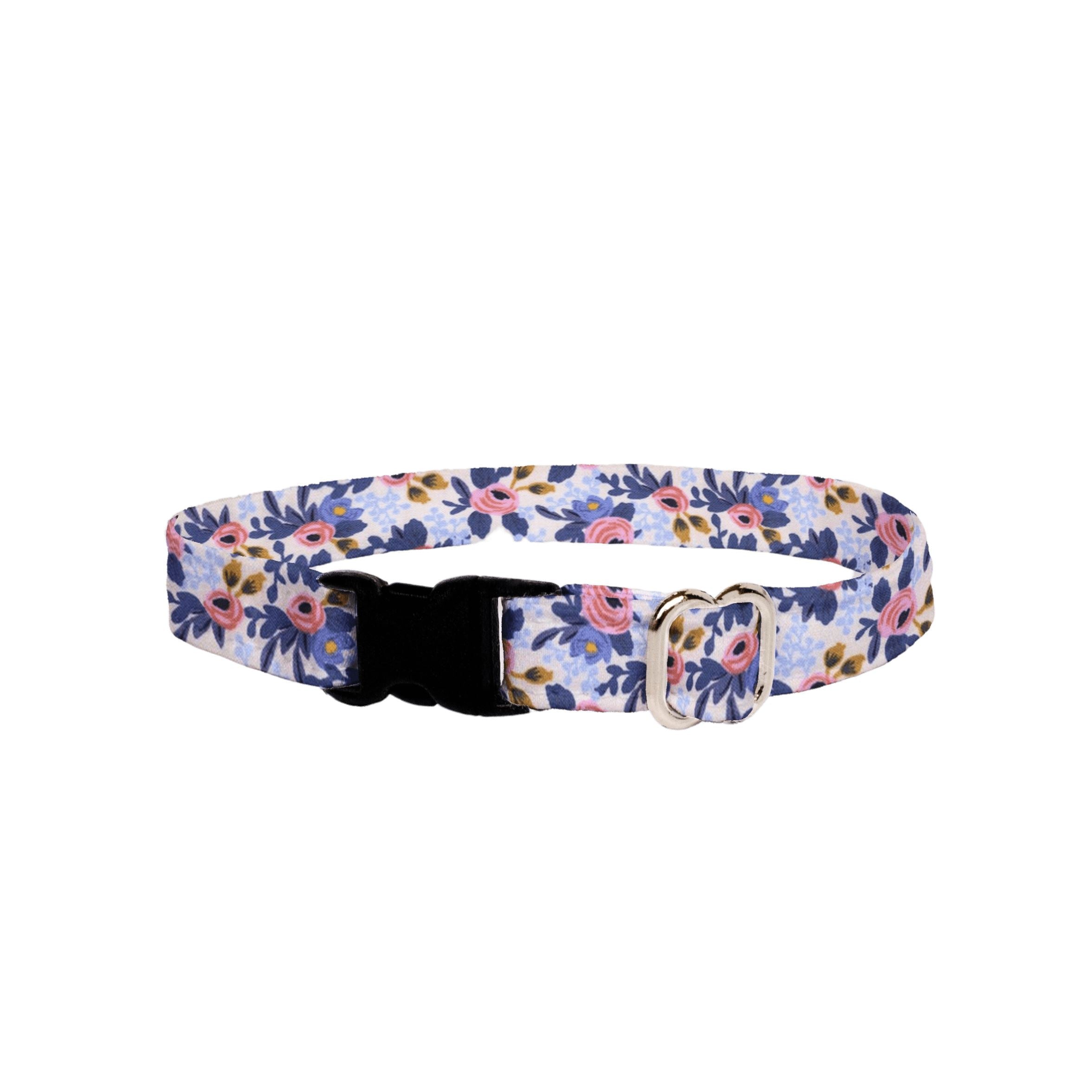 Floral themed pet collar is available in multiple sizes for cats, kittens + small dogs. All of our collars are carefully handmade, one-at-a-time, ensuring luxury, quality, safety and comfort for your pet.