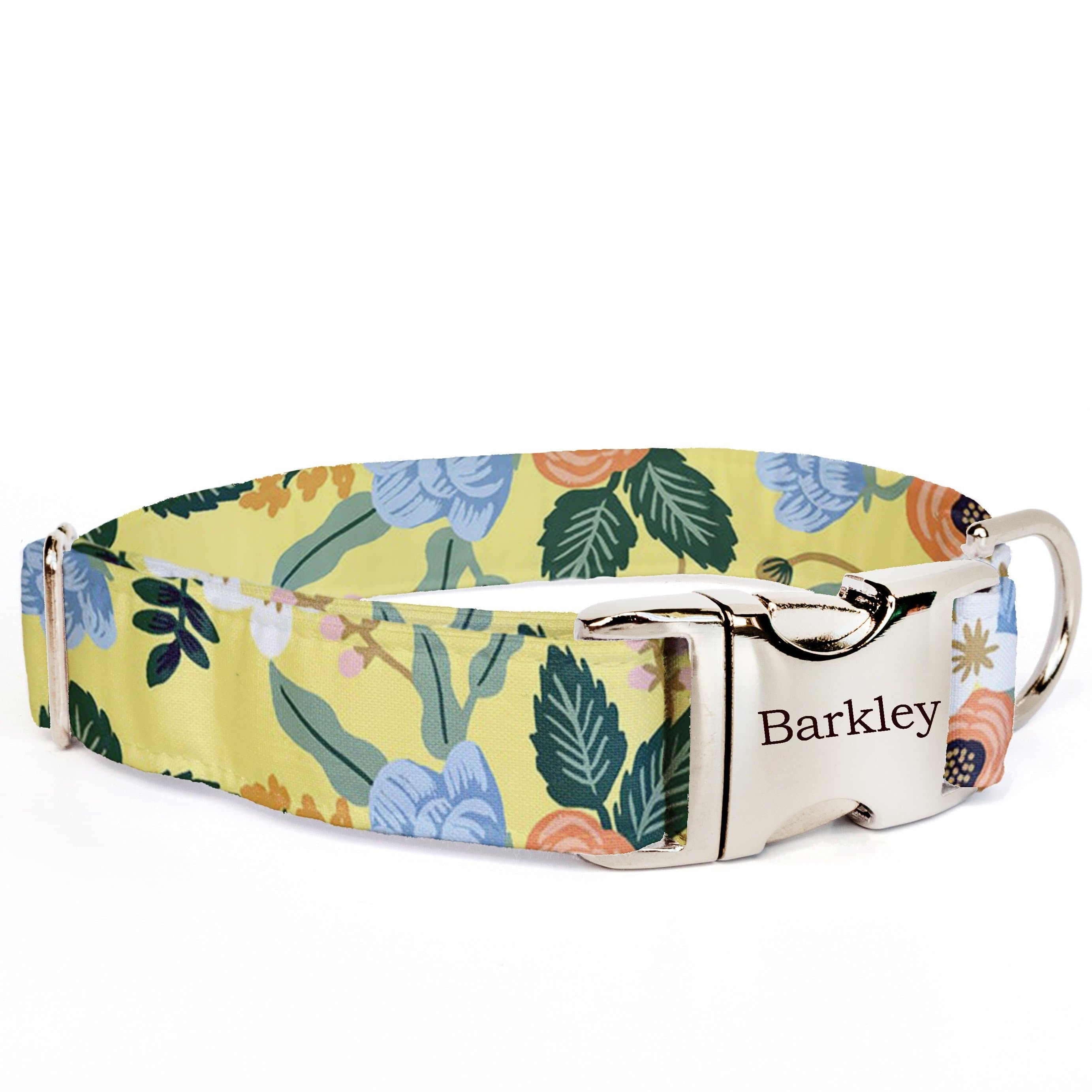 Each Preppy Owl Collar Co dog collar is handmade in the USA. A true soft to touch cotton collar that can be worn in comfort, while sure to be noticed. Collars are made with 4 layers of fabric and lined with a mid-weight interfacing for support and structure. Triple stitched 100% cotton collar with an engraved buckle option. Due to the pattern variation on a cut of fabric, the exact pattern on the actual collar you receive will vary.