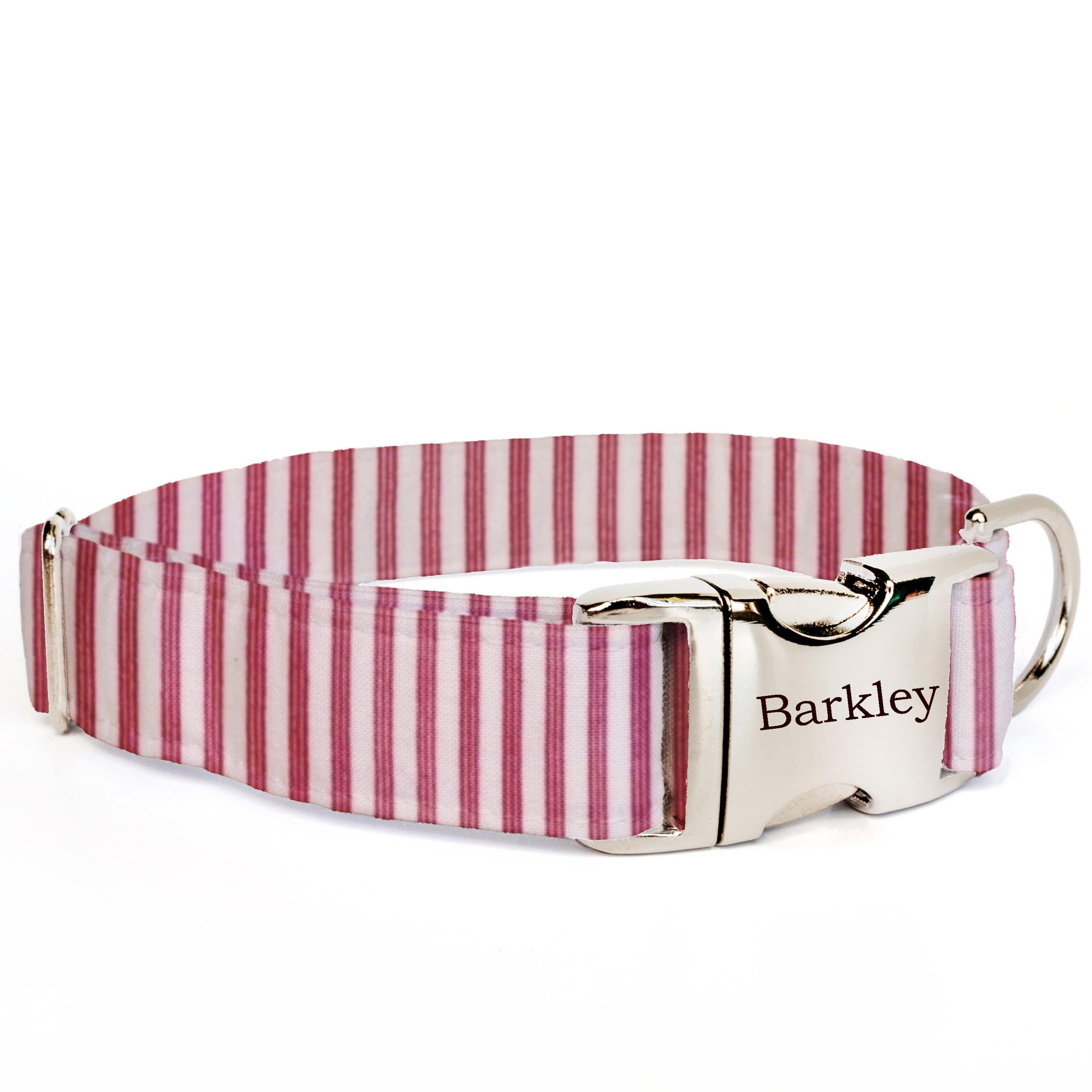 Each Preppy Owl Collar Co dog collar is handmade in the USA. A true soft to touch cotton collar that can be worn in comfort, while sure to be noticed. Collars are made with 4 layers of fabric and lined with a mid-weight interfacing for support and structure. Triple stitched 100% cotton collar with an engraved buckle option. Due to the pattern variation on a cut of fabric, the exact pattern on the actual collar you receive will vary.