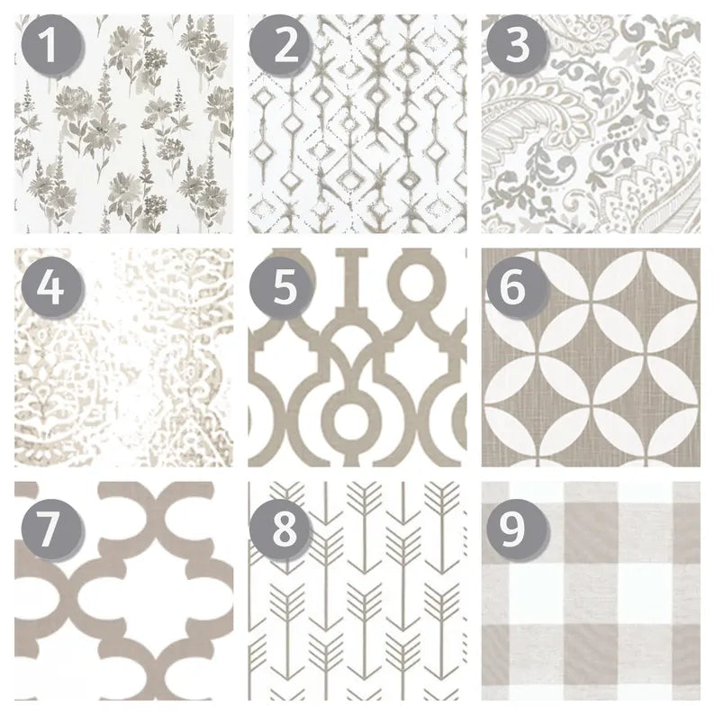 This design is available in 45 fabric print options, ranging from classic and traditional to cozy and casual styles. Simply select your preferred fabric from the options provided before checkout.