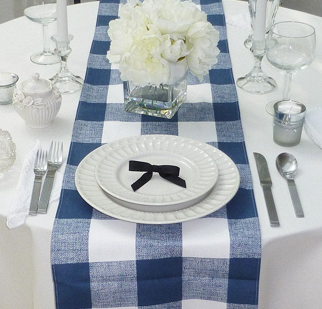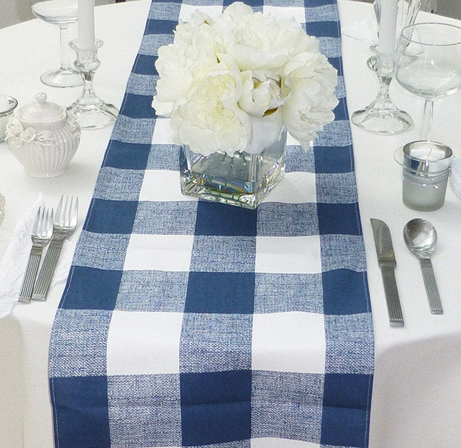 Refresh your space with our blue and white Buffalo Check table runner!